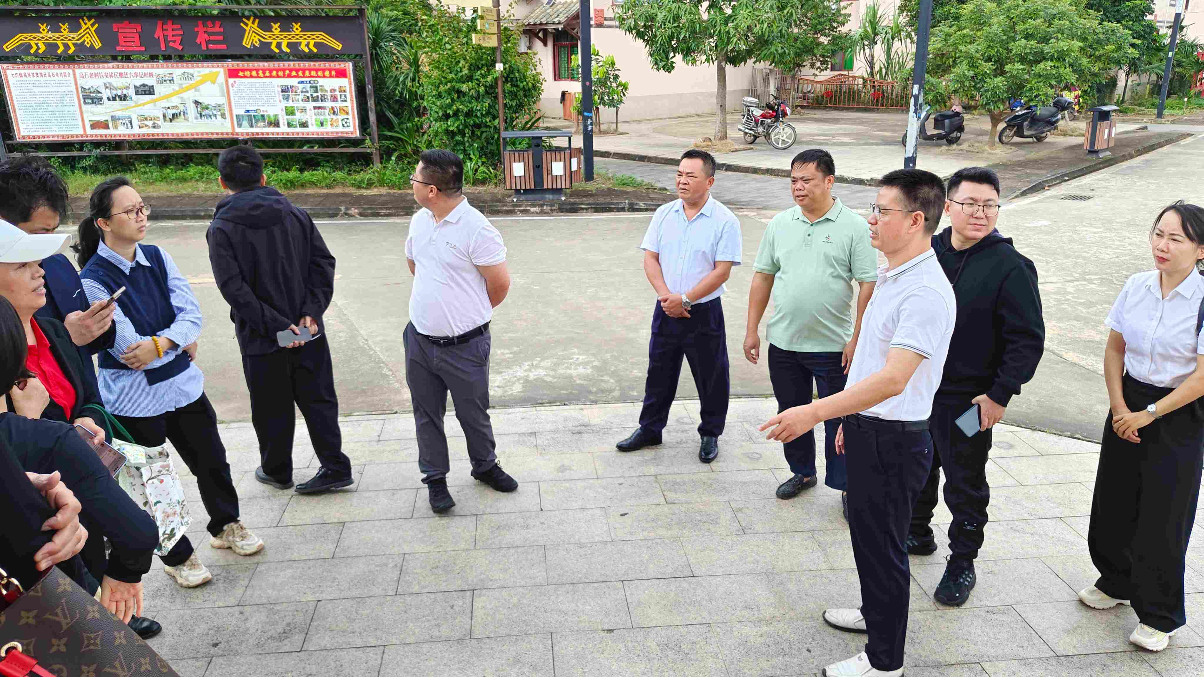 随后,调研组及爱心企业代表来到打金村委会,围绕凤梨产业发展召开专题座谈会。打金村党支部书记张文正详细介绍了村子特色产业——凤梨种植的规模、品种布局、产销模式及当前面临的技术瓶颈。大家认真听取汇报,并与镇村干部、种植户代表深入交流,就如何延伸产业链、提升产品附加值提出建议。座谈会后,团队还走进了打金村凤梨种植基地与林下益智种植区,实地察看特色产业发展情况。