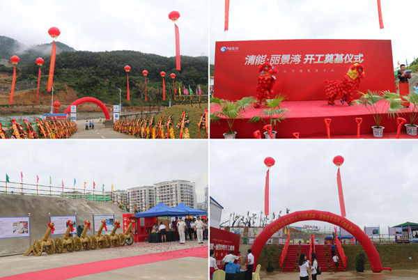 本项目是海南省湖北商会项目合作配套示范项目,建筑行业分会会长周刚,监事长徐犇,副会长肖俊,会员彭文广,秘书处喻红斌等亲临现场,共同见证了清能·丽景湾奠基……